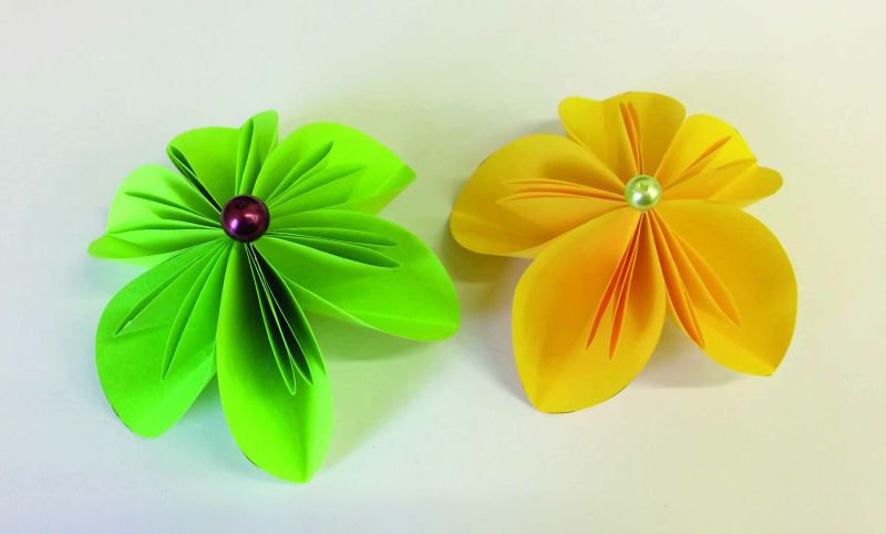 Na každý květ poskládáme 5 až 6 okvětních lístků a slepíme je do květu.